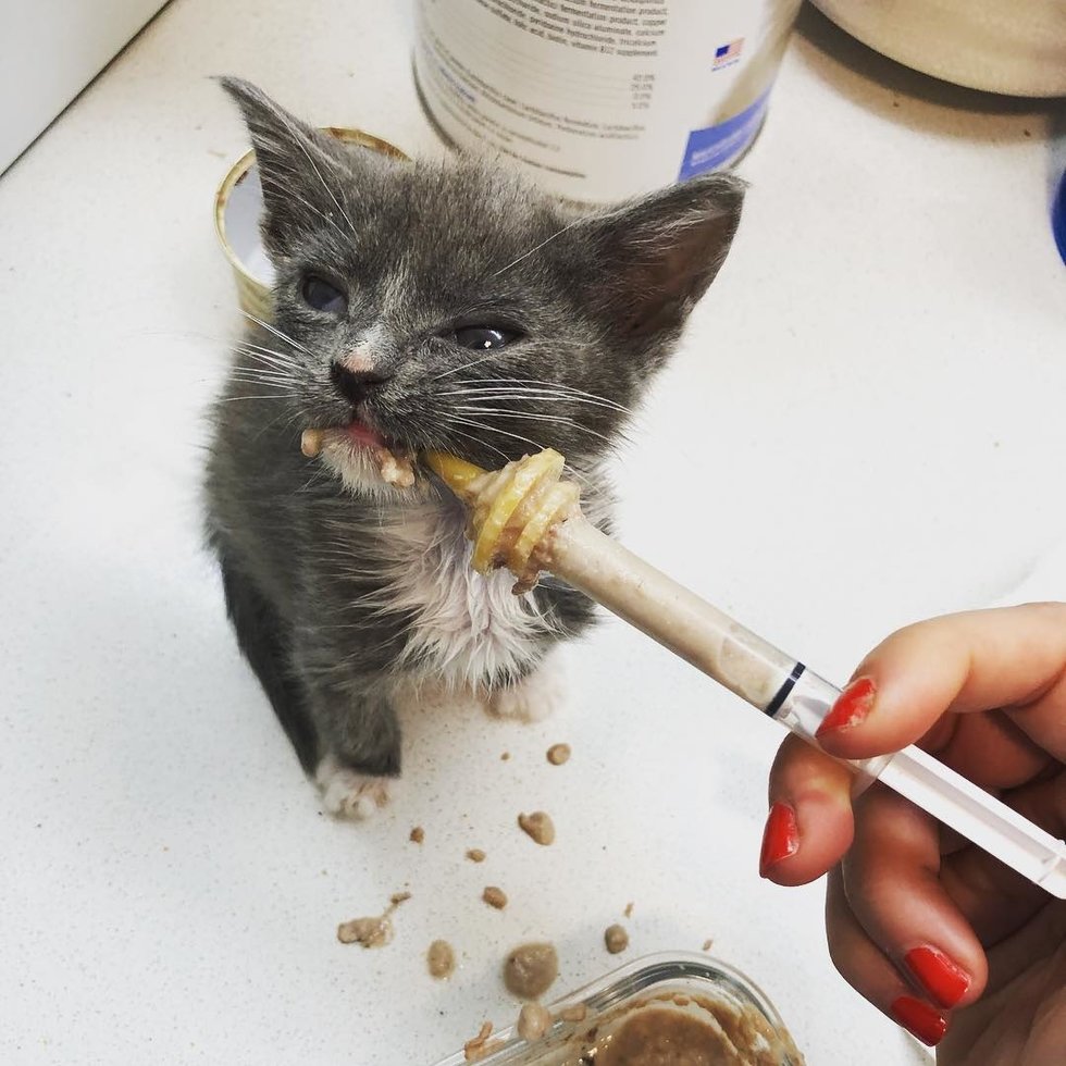 Sarah syringe-fed her around the clock and started both kittens on antibiotics. "Each gram was a struggle with Lily and we celebrated every time she passed another 100-gram increment," Sarah told Love Meow.