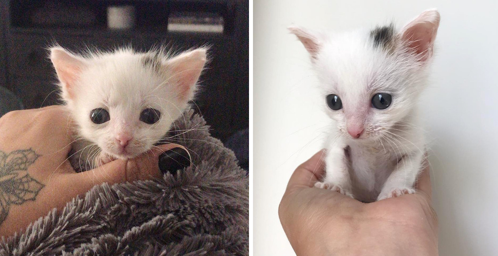 She took him home to foster, knowing he had a long road ahead of him. The kitten, who was just the size of a newborn, was malnourished and anemic, but he used the little strength he had to eat and was determined to live.