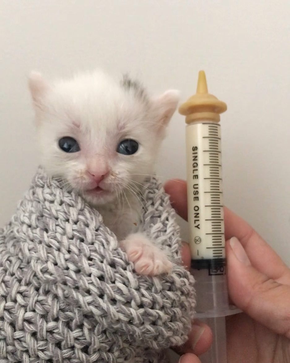 "Fostering kittens like this, or any other animal, can be so exhausting. But I remember that North pulled through when his four siblings passed away within hours. He overcame his first days of diarrhea and severe dehydration, then he overcame an eye infection that he got before his little eyes were even ready to open."