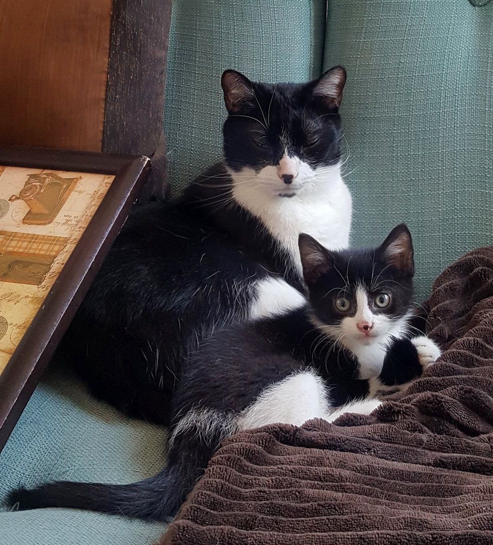 Kitten finds tuxedo cat to cuddle and won't let go youtu.be