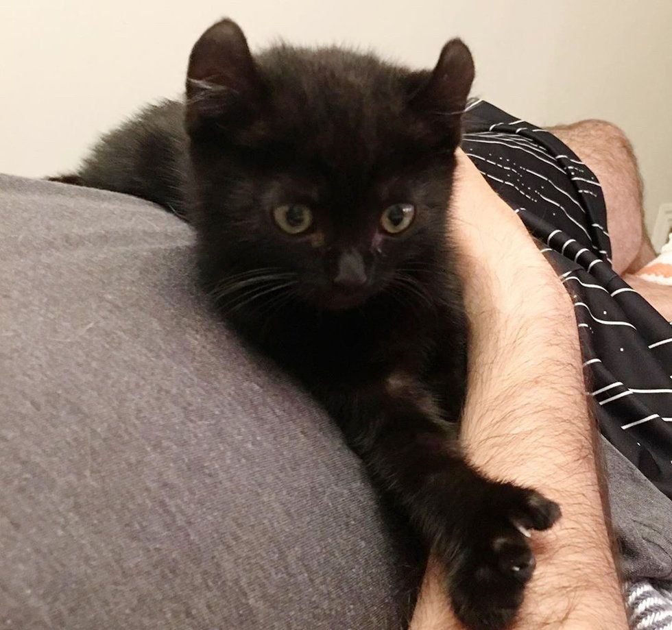 Her tiny hisses quickly turned into purrs, and she began to snuggle. "My boyfriend instantly fell in love and didn't want to put her down unless needed," Erica told Love Meow.