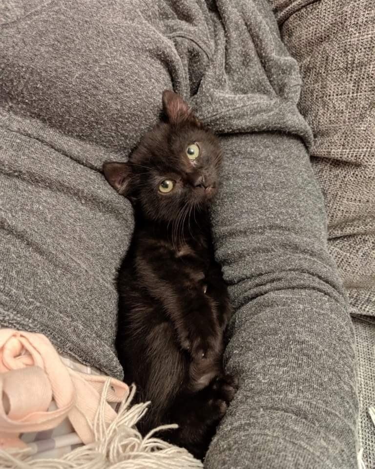 "Her favorite thing to do is either try to play with Charlotte or explore. She loves to get belly rubs and starts to purr immediately when she's picked up."