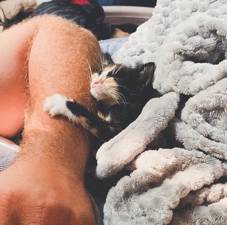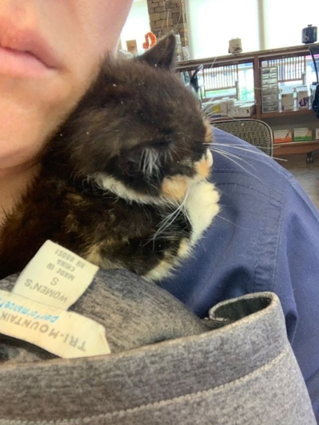A stray kitten who was found all alone outside, cuddled up to everyone she met.