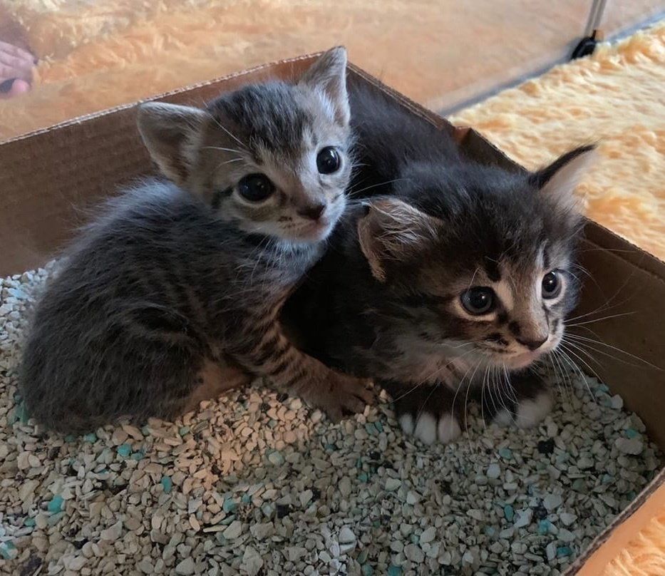 The other kitten was hiding under a towel, and when they removed it, a little ball of fluff was unveiled. They didn't have any information about the second kitten and had no idea how the two tabbies ended up together.