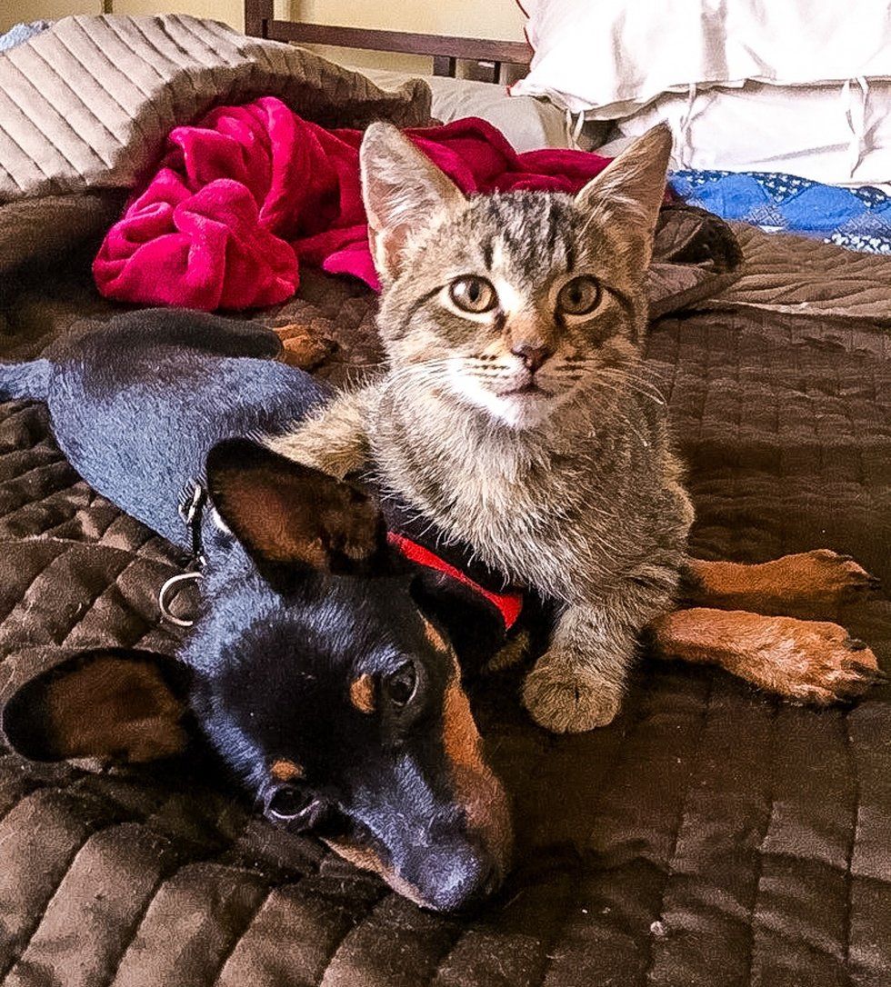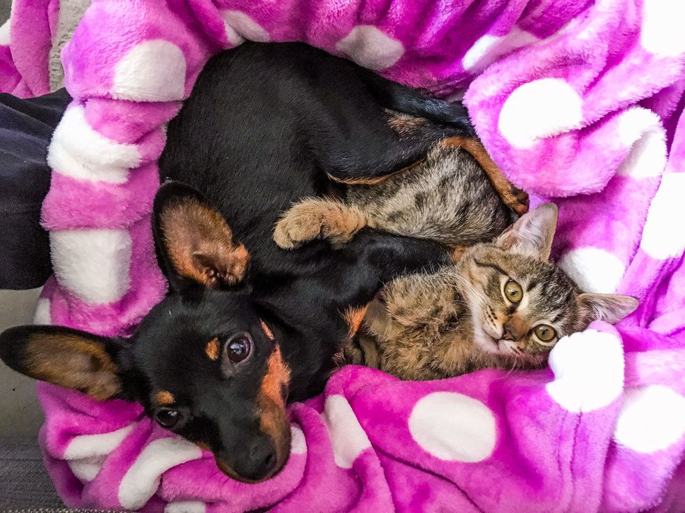 "As soon as we saw them cuddling together to sleep, there was no way we could separate them. We officially adopted the kitten and named him Tequila."