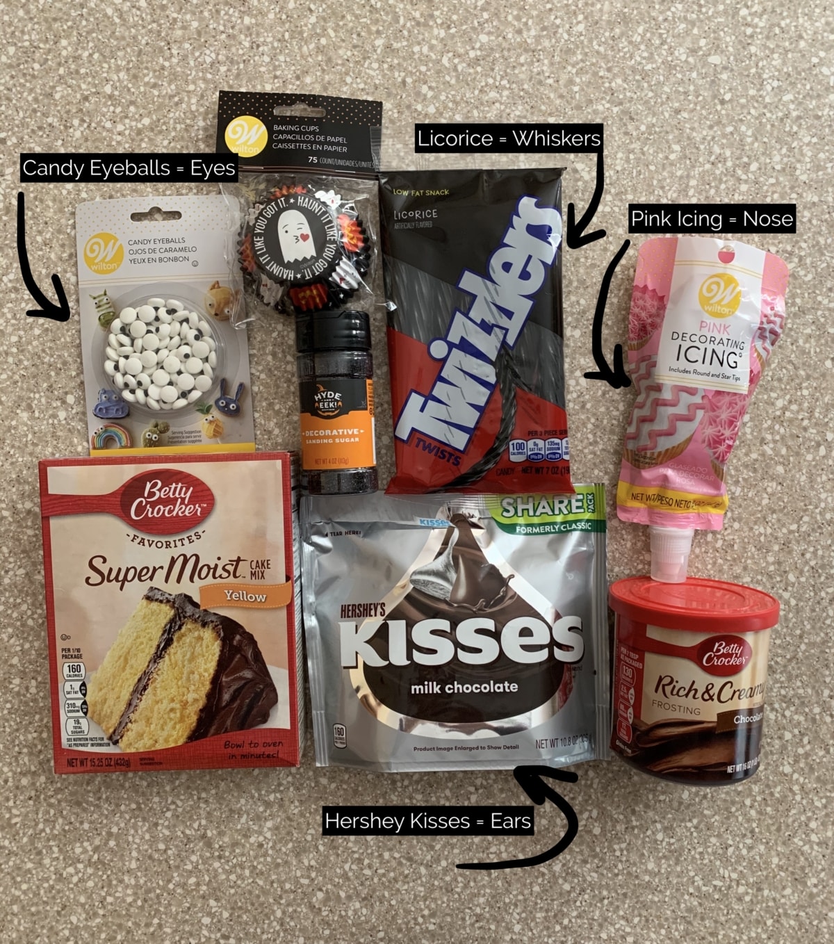 Everything is baked, cooled and ready to go! It’s time to start decorating your halloween cat cupcakes!