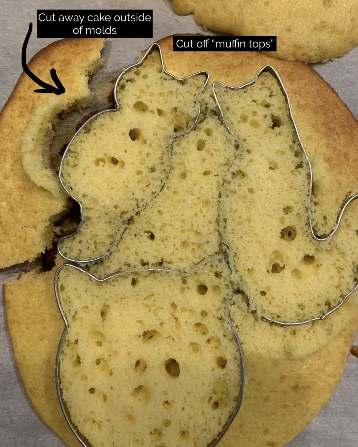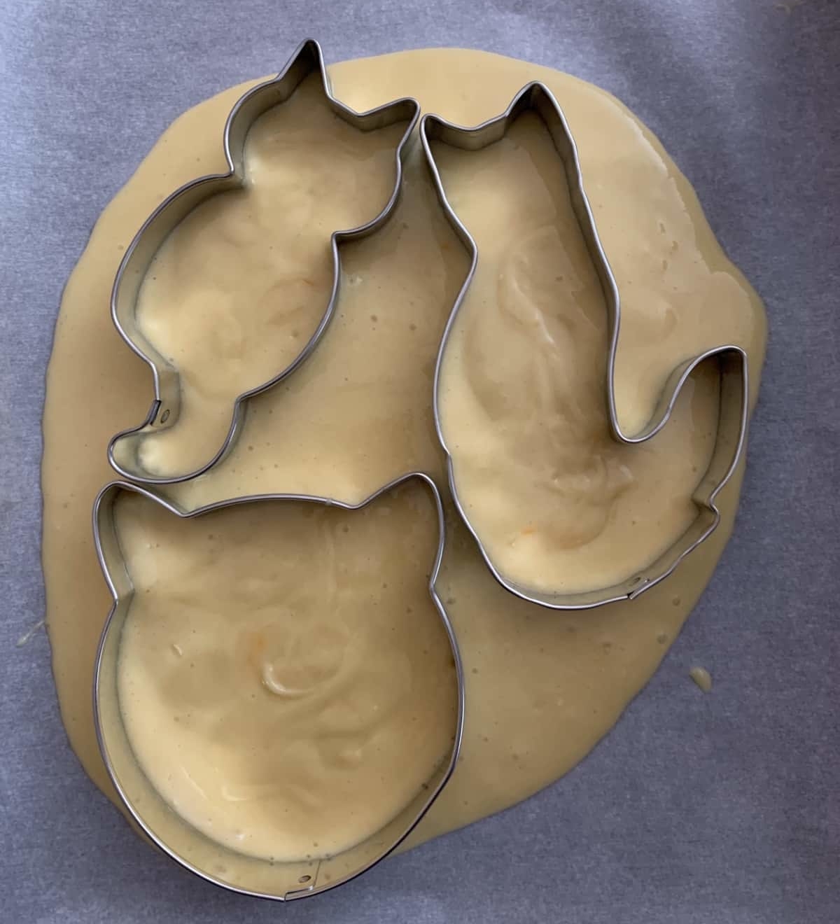 Optional – Cat Cookie Cutters. If you want to try to make cat-shaped cakes, try using these cookie cutters. We found that the less small details, the better (think about a cutter like this one).